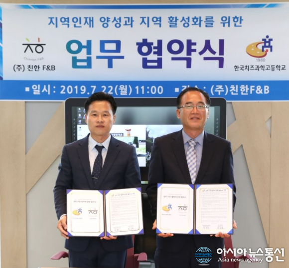 한국치즈과학고와 임실N치즈 가공 식품 기술지원 업무협약 체결.(사진제공=임실군청) 전북 임실N치즈 등 지역농산물을 활용해 가공․ 개발한 소시지로 유명세를 타고 있는 임실군 관내 기업인 (주)친한F&B(대표 정승관)가 기술체험 교육을 통한 인재양성에 발벗고 나섰다. 임실군에 따... 2019-07-23
