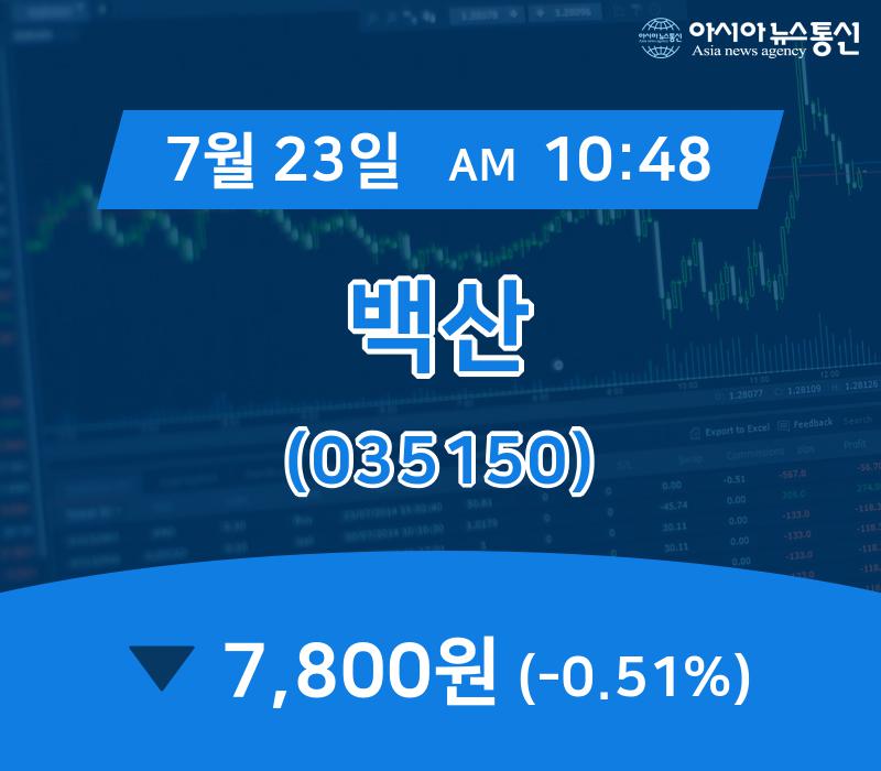 ▲7월 23일 백산 의 주가정보 ◈백산의 거래량 변동추세 [현시간] 백산이(035150) 거래량 변동추이 백산의 시가총액은 1,888억원, 상장주식수는 24,200천주다. 백산의 등락률은 전일에는 -2.12%의 등락률을 보였으나 오늘은 -0.51% 변화한 7,800원을 보이고 있다. 백산의 올해 250 최고가는 12,000원이며 250최저는 4,740원이다. ▲백... 2019-07-23