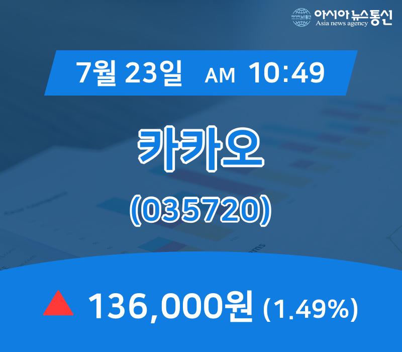 ▲7월 23일 카카오 의 주가정보 ○카카오의 거래량 추이 [현시간] 카카오가(035720) 거래량 경향 카카오의 시가총액 규모는 113,527억원, 상장주식수는 83,476천주다. 카카오의 등락률은 전일에는 -0.74%의 등락률을 보였으나 오늘은 1.49% 변화한 136,000원을 보이고 있다. 카카오의 올해 250 최고가는 136,000원이며 250최저는 86,00... 2019-07-23