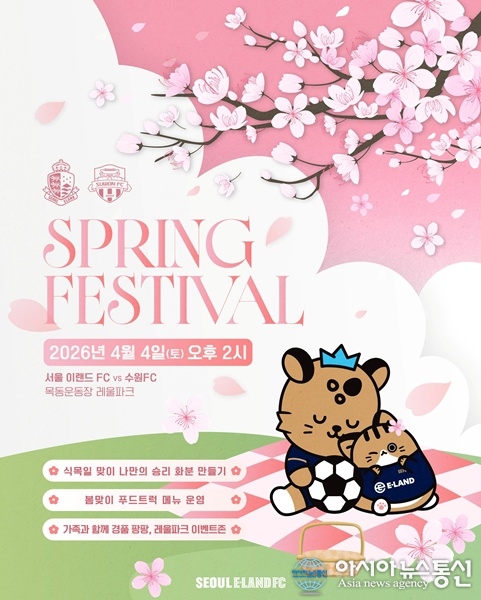 (사진제공=서울 이랜드 FC) [아시아뉴스통신=이상진 기자] 서울 이랜드 FC가 이번 주말 홈경기에서 ‘스프링 페스티벌’을 개최한다. 서울 이랜드는 오는 4일 오후 2시 목동운동장에서 수원FC를 상대로 하나은행 K리그 2026 6라운드 홈경기를 치른다. 이날 경기는 식목일과 봄나들이 시... 2026-04-01
