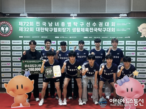 '제72회 전국남녀종별탁구선수권대회'에서 남자대학부 단체전 은메달을 획득한 국립경국대학교 탁구부. 왼쪽 위부터 이정훈(코치), 윤동한(체육·3), 강진호(체육·3), 김준혁(체육·4), 김동현(체육·1), 김태헌(체육·3), 조한국(체육·4), 권혁민(체육·3), 이도열(트레... 2026-03-31