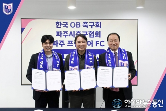 (사진제공=파주FC) [아시아뉴스통신=이상진 기자] 파주 프런티어 FC(단장 황보관)가 축구 명문 도시로 불리었던 파주시의 영광을 재현하기 위해 파주시축구협회 및 한국OB축구회와 전략적 파트너십을 구축하며 본격적인 행보에 나섰다. 파주 프런티어 FC는 지난 3월 30일, 파주시축구협회(... 2026-04-01