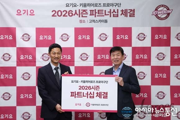 (사진제공=키움 히어로즈) [아시아뉴스통신=이상진 기자] 키움히어로즈(대표이사 위재민)는 국내 대표 배달 앱 ‘요기요’와 2026시즌 파트너십 계약을 체결했다. 이번 파트너십 체결로 키움은 고척스카이돔 프리미엄 좌석인 ‘R.d-club’의 명칭을 ‘요기요 R.d-club’으로... 2026-03-30
