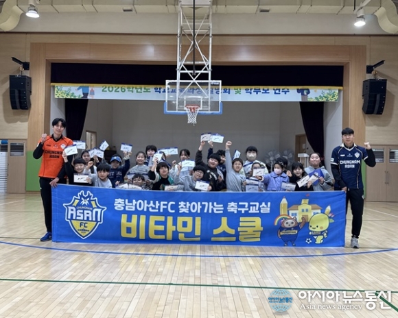(사진제공=충남아산FC) [아시아뉴스통신=이상진 기자] 충남아산프로축구단(대표이사 이준일, 이하 충남아산FC)이 지난 26일 온양동신초등학교(이하 온양동신초)에서 올해 첫 ‘비타민스쿨’을 진행했다. 비타민스쿨은 창단부터 진행한 구단의 대표 사회공헌활동으로 충청남도 관내... 2026-03-31