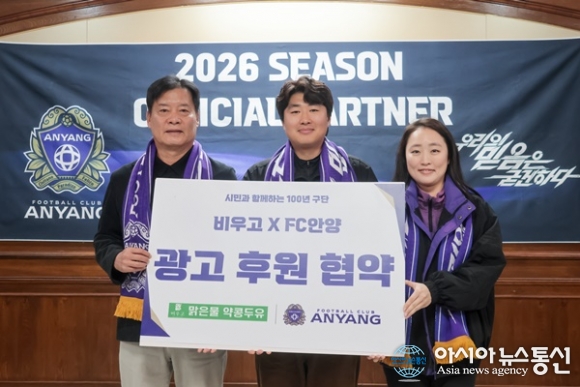 (사진제공=FC안양) [아시아뉴스통신=이상진 기자] 프로축구 K리그1 FC안양이 비우고와 후원 협약을 체결하며 지역 상생 협력에 나섰다. 지난 24일 안양종합운동장 귀빈실에서 FC안양과 비우고의 후원 협약식이 진행됐다. 이번 협약식에는 FC안양 이우형 단장과 비우고 이승재 대표 등 양사 ... 2026-03-27