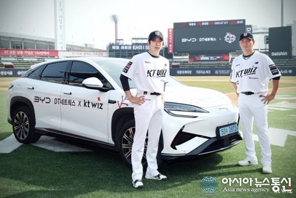 (사진제공=KT 위즈) [아시아뉴스통신=이상진 기자] kt wiz 프로야구단(대표이사 이호식)이 24일 두산 베어스와의 시범경기가 열린 수원KT위즈파크에서 DT네트웍스와 마케팅 스폰서십을 체결했다. 도이치오토모빌 그룹의 자회사인 DT네트웍스는 BYD 코리아의 최대 공식 딜러사다. 이번 협약... 2026-03-27