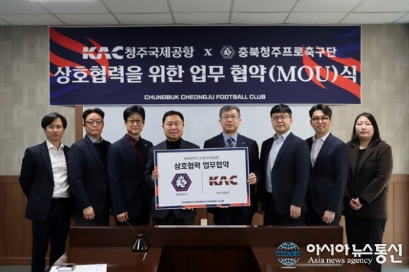 (사진제공=충북청주FC) [아시아뉴스통신=이상진 기자] 충북청주프로축구단(대표이사 김현주, 이하 충북청주FC)이 한국공항공사 청주공항(이하 청주국제공항)과 손잡고 지역 상생과 공동 마케팅 활성화에 나선다. 충북청주FC는 26일 구단 사무국에서 청주국제공항과 업무협약을 체결했다. ... 2026-03-27