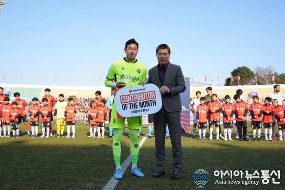(사진제공=강원FC) [아시아뉴스통신=이상진 기자] 박청효와 길효성 사원이 강원FC 2월의 공헌상 수상자로 선정됐다. 강원FC는 지난 22일 강릉하이원아레나에서 열린 하나은행 K리그1 2026 5라운드 제주SK FC와 홈경기에서 2월의 공헌상 시상식을 진행했다. 2024년부터 이어지고 있는 이달의 공... 2026-03-26