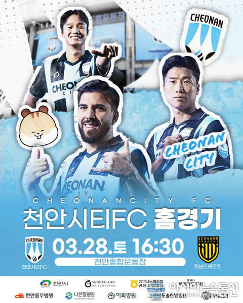 (사진제공=천안시티FC) [아시아뉴스통신=이상진 기자] 천안시민프로축구단(천안시티FC, 이하 천안)이 오는 3월 28일 오후 4시 30분, 천안종합운동장에서 열리는 하나은행 K리그2 2026 5라운드 홈경기에서 전남드래곤즈를 상대로 시즌 첫 승 사냥에 나선다. 양 팀의 역대 전적은 천안이 4승 5패... 2026-03-26