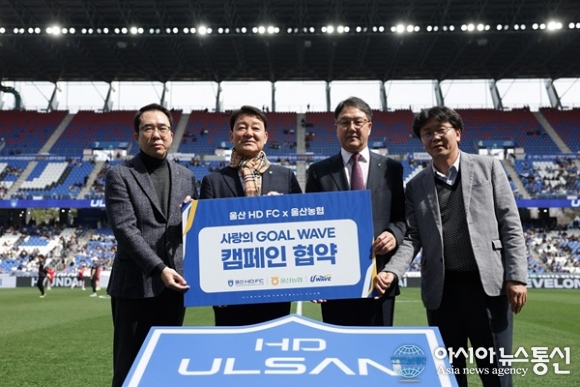 (사진제공=울산 HD FC) [아시아뉴스통신=이상진 기자] 울산 HD가 울산농협과 손잡고 득점의 기쁨을 지역사회와 나누는 특별한 캠페인을 시작한다. 울산은 지난 22일 문수축구경기장에서 울산농협과 ‘사랑의 골 웨이브(GOAL WAVE)’ 캠페인 협약식을 진행했다. 이날 협약식에는 울산 강... 2026-03-25