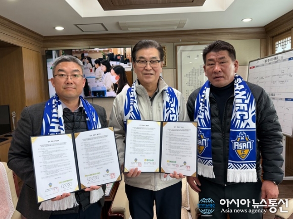 (사진제공=충남아산FC) [아시아뉴스통신=이상진 기자] 충남아산프로축구단(대표이사 이준일, 이하 충남아산FC)이 지난 13일 영인농협에서 아산시농협쌀조합공동사업법인, 영인농협과 협약식을 체결했다. 이날 협약식에는 충남아산FC 박명화 사무국장, 아산시농협쌀조합공동사업법인 유... 2026-03-26