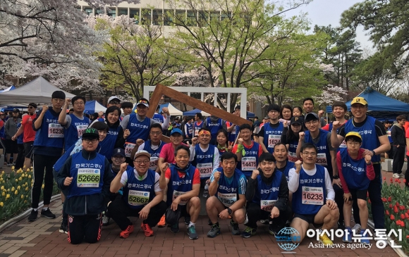 '2018 대구국제마라톤대회'에 참가한 한국가스공사 마라톤 동호회 회원 및 임직원 가족들이 기념촬영을 하고 있다.(사진제공=한국가스공사) 한국가스공사(사장 정승일)는 지난 1일 대구 중구 국채보상운동기념공원 및 시내 일원에서 열린 '2018 대구국제마라톤대회'를 3년 연속 공... 2018-04-03