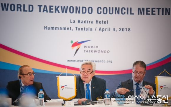 조정원총재(가운데)가 집행위원회를 진행하고있다.(사진제공=WT) 세계태권도연맹(WT)은 현지시간 4일 오후 튀니지 함마메트에서 집행위원회를 개최했다고 밝혔다. 집행위원회는 '2020 세계청소년태권도선수권’대회 개최지로 불가리아 소피아 (Sofia)를 선정했다. 이로써 불가리아는 ... 2018-04-05