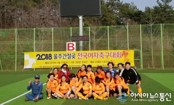 ‘2018 울주 간절곶 전국여자축구대회’에 참가한 표선면 여성축구회 선수들의 단체사진.(사진제공=표선면 여성축구회) 표선면 여성축구회가 지난달 31일부터 4월 1일까지 양일간 울산시 울주군 간절곶 스포츠파크에서 열린 ‘2018 울주 간절곶 전국여자축구대회’ 에 참가해 좋... 2018-04-01