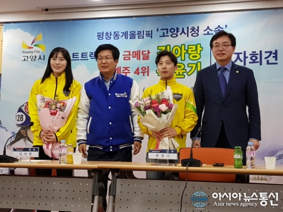 /아시아뉴스통신=고상규 기자 평창동계올림픽 여자계주 금메달리스트 김아랑 선수와 남자계주 4위 곽윤기 선수가 아낌없는 응원과 격려를 보낸 고양시민들에게 감사 인사를 건넸다. 김아랑, 곽윤기 선수는 지난 23일 고양시를 찾아 지난 동계올림픽에서 열렬히 응원해 준 고양시민들에게... 2018-03-27