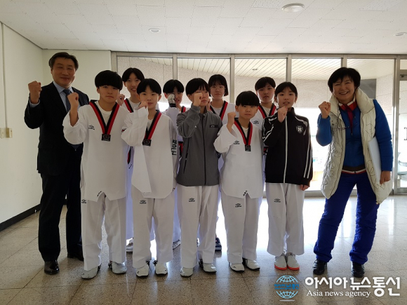 지난 23~24일 2일간 영천체육관에서 열린 2018 경북소년체육대회 태권도경기에서 2명의 선수를 경북 대표선수로 선발시킨 청도초등학교 태권도부.(사진제공=청도초등학교) 경북 영천실내체육관에서 지난 23~24일 2일간 열린 2018 경북소년체육대회 태권도경기에서 청도초등학교 2명의 선수가 경... 2018-03-27