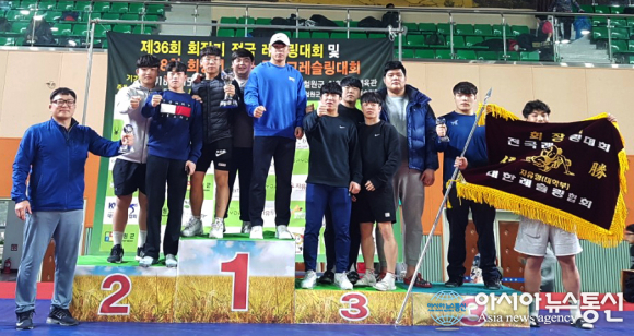 제36회 회장기 전국레슬링대회에서 단체우승을 차지한 영남대 레슬링부 선수와 감독이 기념촬영을 하고 있다.(사진제공=영남대) 영남대학교 레슬링부(감독 김익희)가 제36회 회장기 전국레슬링대회에서 단체 우승을 차지했다. 21일 영남대에 따르면 지난 15~18일까지 강원도 철원실내체육... 2018-03-21