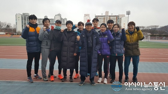 충북 옥천군 육상팀이 오는 25일 개최되는 ‘제18회 인천국제하프마라톤대회’를 시작으로 2018년 육상대회 레이스에 본격 돌입한다. 사진은 지난해 12월 옥천군 육상팀 선수들이 이봉주 전 마라톤 선수(맨앞)와 함께 포즈를 취하고 있다.(사진제공=옥천군청) 충북 옥천군 육상팀(감독 ... 2018-03-22