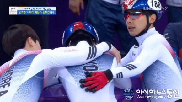 (사진= 방송화면) 김도겸이 노메달에 아쉬움을 드러냈다. 22일 진행된 쇼트트랙 남자 5000m 계주 결승에 출전한 김도겸 선수과 곽윤기 선수는 놀라운 경기 진행력을 보여주었음에도 불구, 4위로 경기를 마무리했다. 김도겸은 믹스트존 인터뷰서 "팀이 이 경기에 준비를 많이 했는데 결... 2018-02-22