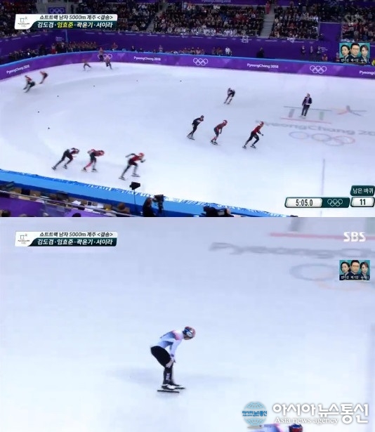 (사진= 방송화면) 남자 쇼트트랙 5000m 계주에서 대한민국이 넘어지면서 아쉽게 메달 사냥에 실패했다. 1위는 헝가리가 차지했다. 쇼트트랙 남자 계주 대표팀이 22일 오후 강원도 강릉 아이스아레나에서 열린 2018년 평창겨울올림픽 남자 5000m 계주 결승에서 4위에 머물렀다. 이날 22바퀴를 ... 2018-02-22