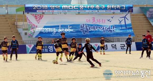 22일 경북 영덕군민운동장에서 열린 태왕주니어축구클럽-성한수FC 개막전을 시작으로 '2018 영덕 MBC 국제꿈나무축구대회·윈터리그'가 7일간 일정에 들어갔다.(사진제공=영덕군) 한국 축구 꿈나무들의 제전인 '2018 영덕 MBC 국제꿈나무축구대회·윈터리그'가 22일 영덕군... 2018-02-23