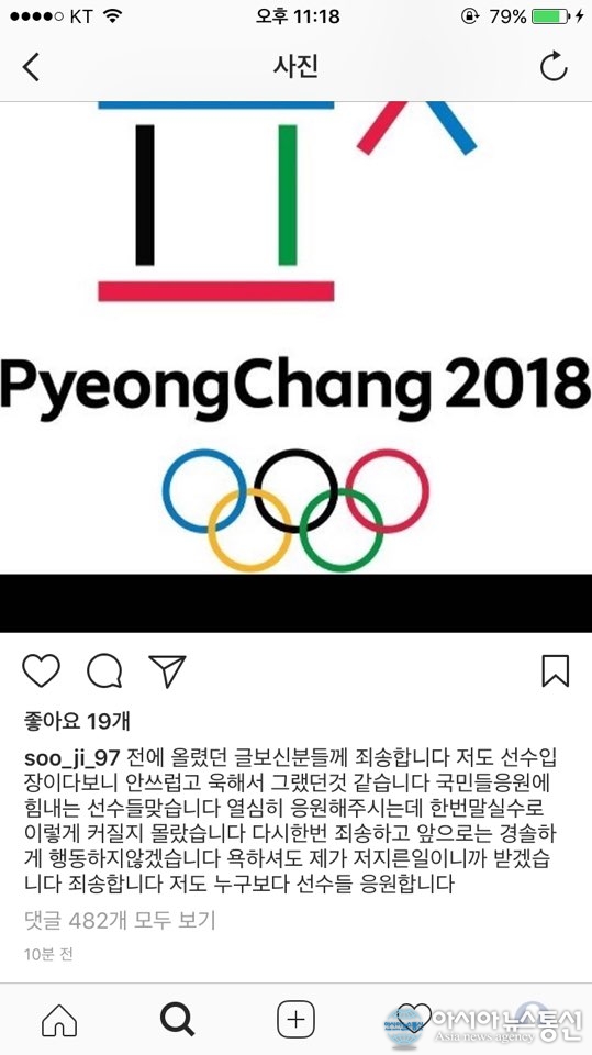 (사진= 장수지 인스타그램) 한국 여자 스피드스케이팅 대표팀이 2018 평창동계올림픽 팀추월 준결승 진출에 실패한 가운데 스피드스케이팅 선수 김보름과 장수지가 잇따라 '태도 논란'으로 구설에 올랐다. 지난 19일 강릉스피드스케이팅경기장에서 열린 평창올림픽 여자 팀추월 준준... 2018-02-21