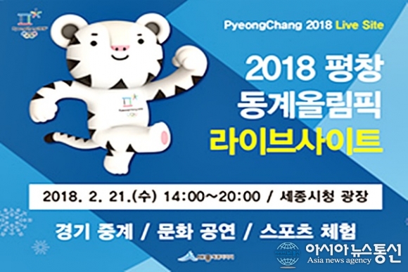 세종시가 21일 오후 시청 앞 광장에서 운영하는 라이브사이트 홍보 포스터.(사진출처=세종시청) 세종시가 21일 오후 2시부터 시청 앞 광장에서 평창동계올림픽 이동형 라이브사이트를 운영한다. 19일 시에 따르면 이번 행사는 중반을 넘어선 동계올림픽에 대한 시민들의 관심을 제고하고 ... 2018-02-19
