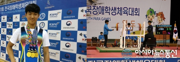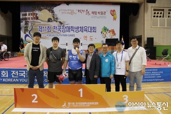 제11회 전국장애학생체전서 역도 스쿼트, 데드리프트 종합부문 한국 학생 신기록을 수립, 3관왕에 오른 지민호 선수(면천중)가 금메달을 보이고 있다.(사진제공=충남도교육청) 제11회 전국장애학생체육대회에서 충남선수단이 전국 종합성적 2위를 차지했다. 충남도와 도교육청에 따르면 ... 2017-05-19