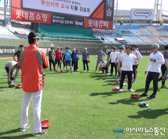 프로야구 롯데자이언츠는 지난 19일 사직야구장 그라운드에서 부산지역 초등학교 교사를 대상으로 티볼 강습회를 실시했다.(사진제공=롯데자이언츠) 프로야구 롯데자이언츠는 지난 19일 사직야구장 그라운드에서 부산지역 초등학교 교사를 대상으로 티볼 강습회를 실시했다. 롯데는 지... 2017-05-20