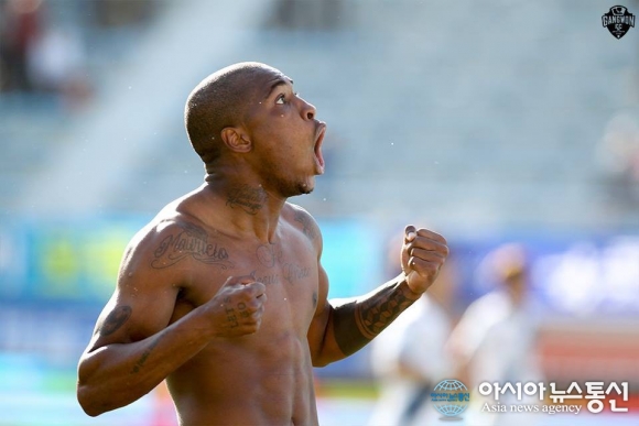 포효하는 강원FC 디에고.(사진제공=강원FC) 순둥이가 야수로 돌변해 포효했다. 강인한 눈빛, 우람한 근육질 몸매와 달리 디에고는 강원FC의 대표적인 순둥이다. 평소에 좀처럼 목소리를 높이는 적이 없다. 조용히 자신의 의견을 얘기한다. 시끄러운 곳을 좋아하지도 않는다. 쉬는 날에는 주... 2017-05-11