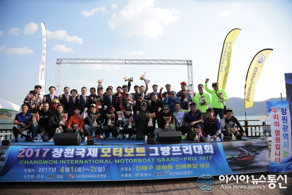 ‘2017 창원 국제모터보트 그랑프리대회’ 시상식.(사진제공=창원시청) 벚꽃으로 물든 진해루 앞바다에서 흰 파도를 가르며 질주하는 K-450 모터보트와 수상오토바이의 경쾌한 승부가 펼쳐져 휴일을 맞아 경기장을 찾은 시민과 관광객들에게 해양스포츠의 색다른 즐거움을 선사했다. ... 2017-04-03