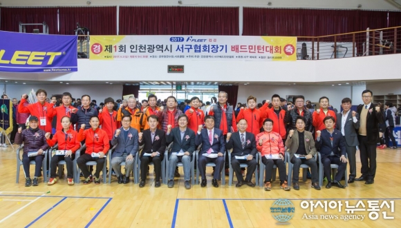 2일 서구 인재개발원 체육관에서 제1회 서구협회장기 배드민턴대회가 열린 가운데 내 외빈이 참석해 배드민턴 관계자들과 기념 촬영을 하고 있다.(사진제공=서구청) 지난 2일 서구 인재개발원 체육관에서 ‘제1회 서구협회장기 배드민턴대회’(협회장 나종수)가 열렸다. 서구배드민... 2017-04-03