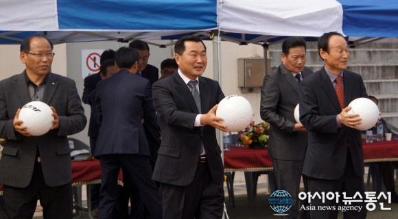 1일 허영 창원시체육회 상임부회장(가운데)가 창원보조구장에서 열린 ‘제8회 3.15의거기념 전국어르신 생활체육 축구대회’ 개회식에서 시축에 나서고 있다.(사진제공=창원시체육회) ‘제8회 3.15의거기념 전국어르신 생활체육 축구대회’가 지난 1일과 2일 이틀간 창원보조구장... 2017-04-04