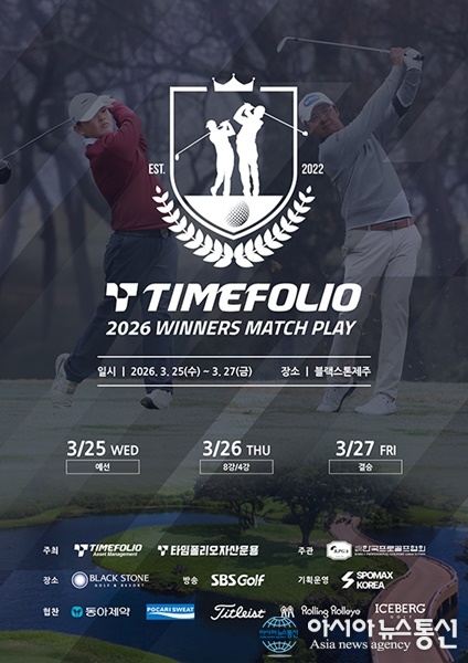(사진제공=KPGA) [아시아뉴스통신=이상진 기자] 2022년 창설돼 올해로 5회째를 맞은 ‘타임폴리오 2026 위너스 매치플레이’가 오는 3월 25일 예선을 시작으로 27일까지 블랙스톤 제주에서 개최된다. ‘타임폴리오 2026 위너스 매치플레이’는 KPGA 투어 선수 1인과 한국초등학교골... 2026-03-25