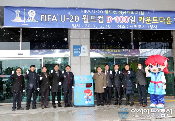 제주 서귀포시에서는 10일 서귀포시 1청사 현관 앞에서 'FIFA U-20 월드컵 코리아 2017' 성공개최 다짐을 기원하는 행사를 개최했다.(사진제공=서귀포시청) 제주 서귀포시는 10일 서귀포시 1청사 현관 앞에서 'FIFA U-20 월드컵 코리아 2017' 성공개최 다짐을 기원하는 행사를 개최했다고 1... 2017-02-10