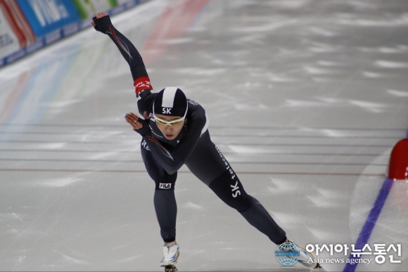 10일 이상화가 강릉스피드스케이팅경기장에서 열린 2017국제빙상경기연맹(ISU) 스피드스케이팅 세계선수권 여자 500m에서 역주를 펼치고 있다./아시아뉴스통신=이순철 기자 빙속여제 이상화가 평창동계올림픽 리허설에서 올해 자신의 최고 기록인 37초48의 기록으로 골인해 부활을 예고했다. ... 2017-02-11