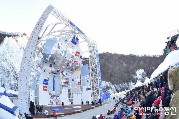 경북 청송군 부동면 아이스클라이밍 경기장 모습,(사진제공=청송군청) '제98회 전국동계체육대회' 시범종목인 아이스클라이밍 대회가 오는 10일부터 이틀간 경북 청송군 부동면 아이스클라이밍 경기장에서 개최된다. 대한체육회가 주최하는 이번 대회는 오는 9일부터 12일까지 4일간... 2017-02-06