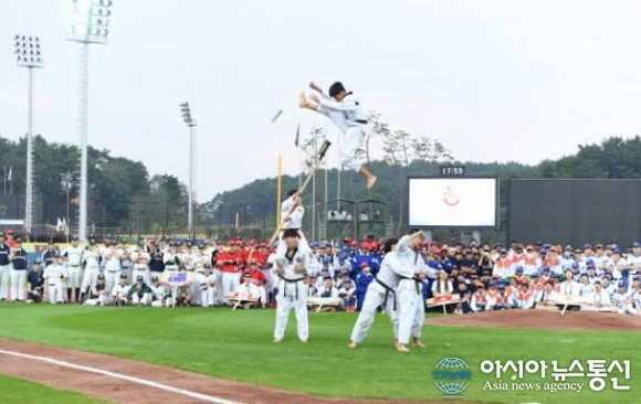 부산 기장군에 인조잔디와 조명시설을 갖춘 리틀야구장과 소프트볼경기장이 건립된다. 지난해 기장-현대드림볼파크에서 열린 세계여자야구선수권대회 개막식에서 태권도 시범을 하고 있다.(사진제공=기장군) 기장군(군수 오규석)이 사회인·유소년 등 야구인구 저변 확대를 위한 리틀... 2017-02-06