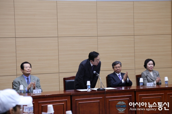 5일 열린 전국동계체전 부산선수단 결단식에서 서병수 시장이 부산선수단의 선전을 당부하고 있다. /아시아뉴스통신=박상언 기자 2017-01-05