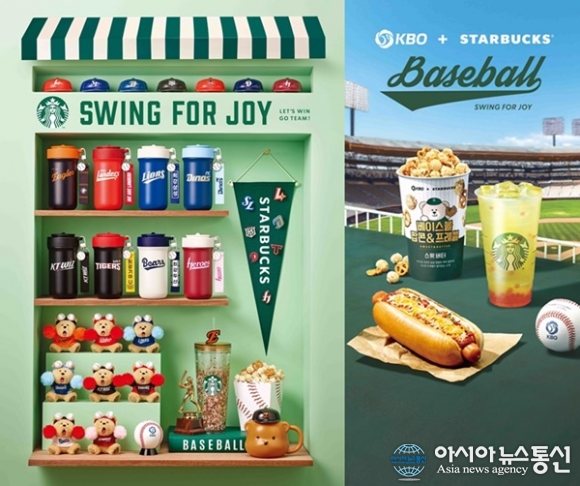 (사진제공=KBO) [아시아뉴스통신=이상진 기자] KBO는 2026년 신한 SOL KBO 리그 시즌 개막을 맞아 스타벅스 코리아와 협업해 ‘Swing for Joy(승리를 부르는 즐거움)’를 주제로 한 컬래버레이션을 선보인다. 이번 협업은 야구 팬들이 경기장은 물론 일상 전반에서 응원하는 팀과 연결된 경... 2026-03-24