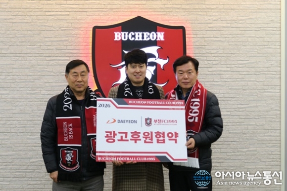 (사진제공=부천FC1995) [아시아뉴스통신=이상진 기자] 부천FC1995(구단주 조용익 부천시장, 이하 부천)가 스포츠 유통 전문 기업인 (주)대연(대표이사 김대호, 이하 대연)과 2026시즌에도 소중한 인연을 이어가기로 했다. 부천은 지난 13일 부천종합운동장에서 부천 정해춘 대표이사와 김성남 ... 2026-03-24