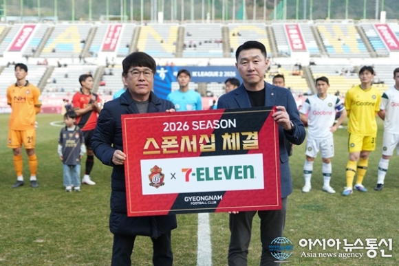 (사진제공=경남FC) [아시아뉴스통신=이상진 기자] 경남FC가 글로벌 편의점 브랜드 세븐일레븐과 스폰서십을 체결하며 홈경기 F&B환경 강화에 나선다. 경남은 22일 창원축구센터에서 열린 ‘하나은행 K리그2 2026’ 4라운드 김포전 킥오프에 앞서 세븐일레븐과의 협약식을 진행했다.... 2026-03-24