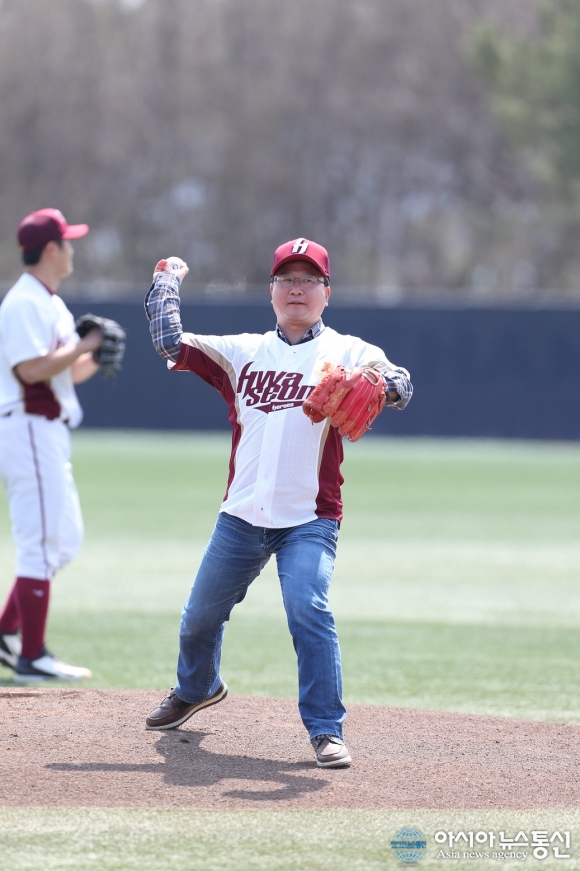5일 경기 화성시 비봉베이스볼파크에서 2016 퓨처스리그 '화성 히어로스'의 홈 개막경기가 열린 가운데 채인석 시장이 시구를 하고 있다.(사진제공=화성시청) 5일 경기 화성시 비봉베이스볼파크에서 2016 퓨처스리그 '화성 히어로스'의 홈 개막경기가 열렸다. 채인석 화성시장이 이날 오후 1시 '화성 히어로... 2016-04-05