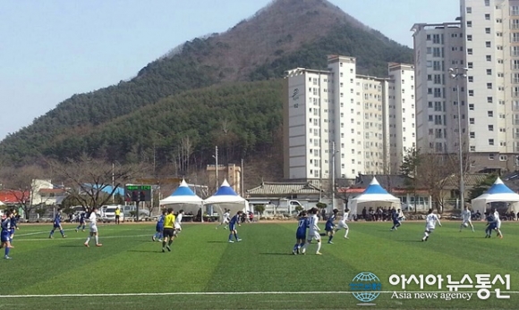 5일 강원도 정선중·고등학교 운동장에서 충주예성여중 축구부(파란색 유니폼)와 경북 포항항동중 축구부 선수들이 8강전 경기를 치루고 있다.(사진제공=충주시축구협회) 충북 충주지역 엘리트 축구가 올해도 매서운 돌풍을 이어가고 있다. 강원도 정선군에서 열리고 있는 ‘2016 춘계한국여자축구연맹전... 2016-04-05