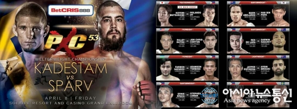 pxc 53.(자료제공=탑FC) 오는 8일 마닐라 솔레어 호텔에서 열리는 pxc 53에 부천 트라이스톤 박한빈, KTT 파르몬 가파로프가 출전한다. 박한빈은 2015년 TOP FC 8 밴텀급 타이틀전에서 현 챔피언 곽관호에게 패한 후 복귀전을 갖는다. 박한빈의 상대 마크 아벨라도는 12승 4패의 전적을 가진 스트라이커로 12승 중 7KO... 2016-04-05