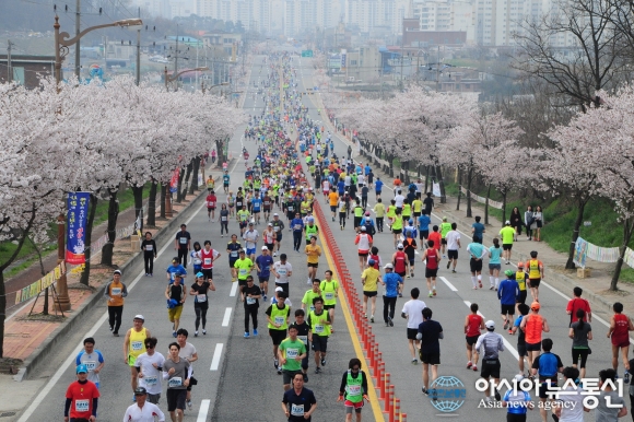 제11회 예산벚꽃마라톤대회 모습.(사진제공=예산군청) 제12회 예산벚꽃전국마라톤대회가 오는 9일 충남 예산군 종합운동장에서 막을 올린다.? ? 6일 군에 따르면 이번 대회에 전국의 마라톤 동호인과 주민 등 5000여명이 참가해 대한육상경기연맹이 공인한 풀코스와 하프코스, 10km 단축코스, 5km 건강코스 등... 2016-04-06