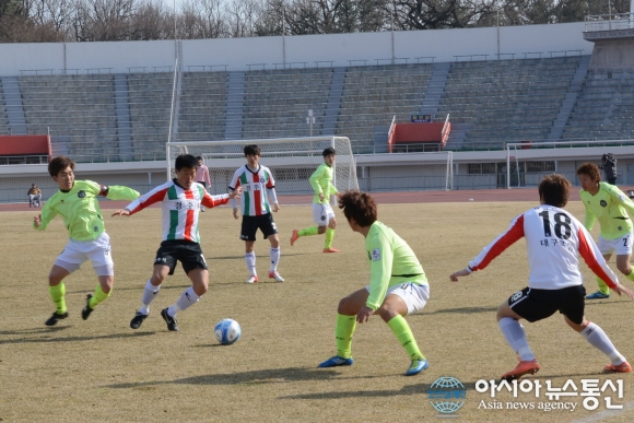 지난해 경주시민축구단 선수들이 개막 경기를 펼치는 모습.(사진제공=경주시청) 경북 경주시민축구단이 '2016년 K3리그 홈개막 경기'에서 서울유나이티드를 상대로 접전 끝에 2:0승리했다. 이날 경기에는 최양식 경주시장을 비롯해 윤영선 경주시축구협회장 등 축구 및 체육관계자들이 참여해 선수들을 격... 2016-04-04