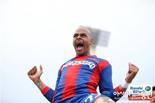 '벨기에 특급' 오군지미.(사진출처=한국프로축구연맹) 수원FC가 '벨기에 특급' 오군지미의 동점골과 이승현의 역전골을 앞세워 광주FC를 상대로 K리그 첫 승을 신고했다. 수원은 3일 오후 2시 수원종합운동장에서 열린 현대오일뱅크 K리그 클래식 2016 3라운드 광주FC와 홈경기에서 정조국에게 선제골 허용했... 2016-04-03