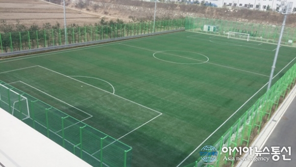 천안시 동남구 수신면 발산리에 조성된 축구장 전경.(사진제공=천안시청) 천안시는 동남구 수신면 발산리에 길이 90m, 너비 45m 규모의 인조잔디 축구장 1면을 조성하고 시민들에게 개방하고 있다고 4일 밝혔다. 축구장은 지난 2015년 9월 7억2300만원을 들여 조성한 것으로 국제경기 최소규격인 길이 100m, 너비... 2016-04-04