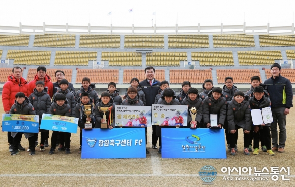 ? 경남 창원시설공단 창원축구센터 유소년축구교실팀이 우승을 차지한 후 김용철 이사장과 함께 기념촬영을 하고 있다.(사진제공=창원시설공단) 경남 창원시설공단 창원축구센터 유소년축구교실(감독 서성길)이 ‘제10회 MBC꿈나무축구 원터리그’에서 우승을 차지했다. 29일 창원시설공단에 따르면, 창... 2016-02-29